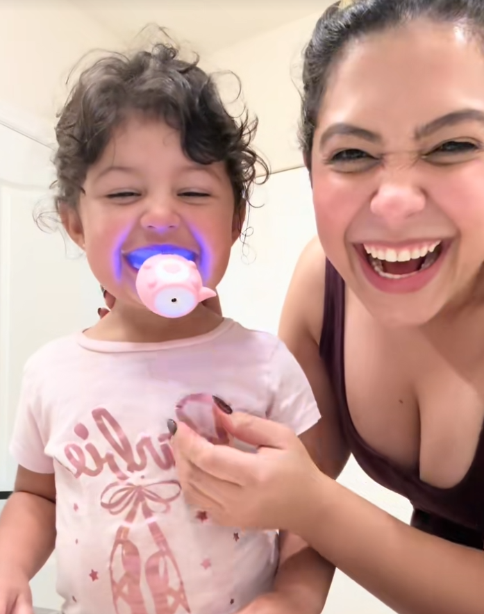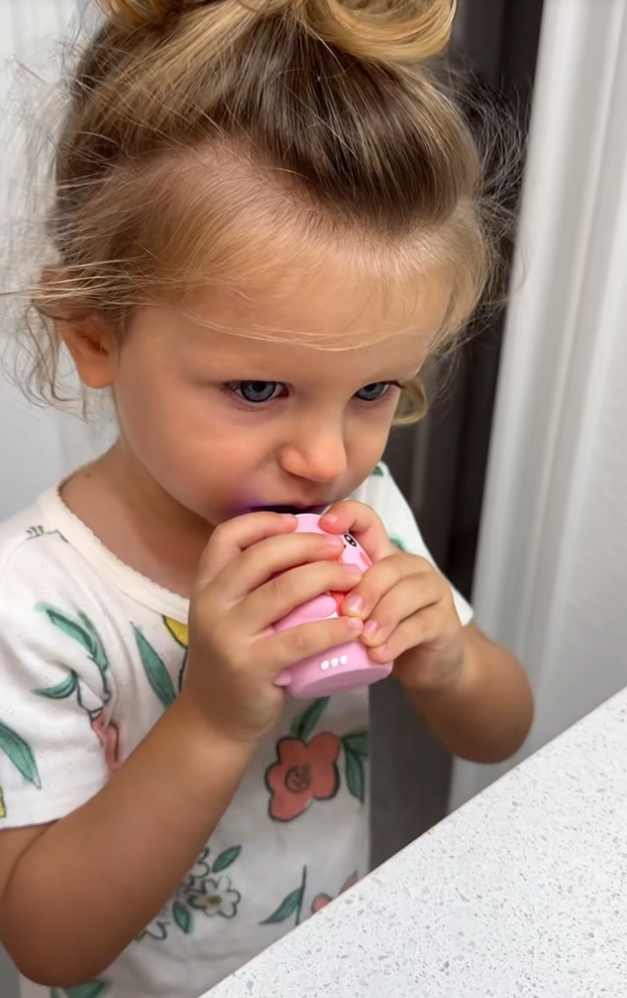 They were sparkling clean, and she couldn’t wait to show them off.No more tears, no more chasing her around — just happy, easy brushing.